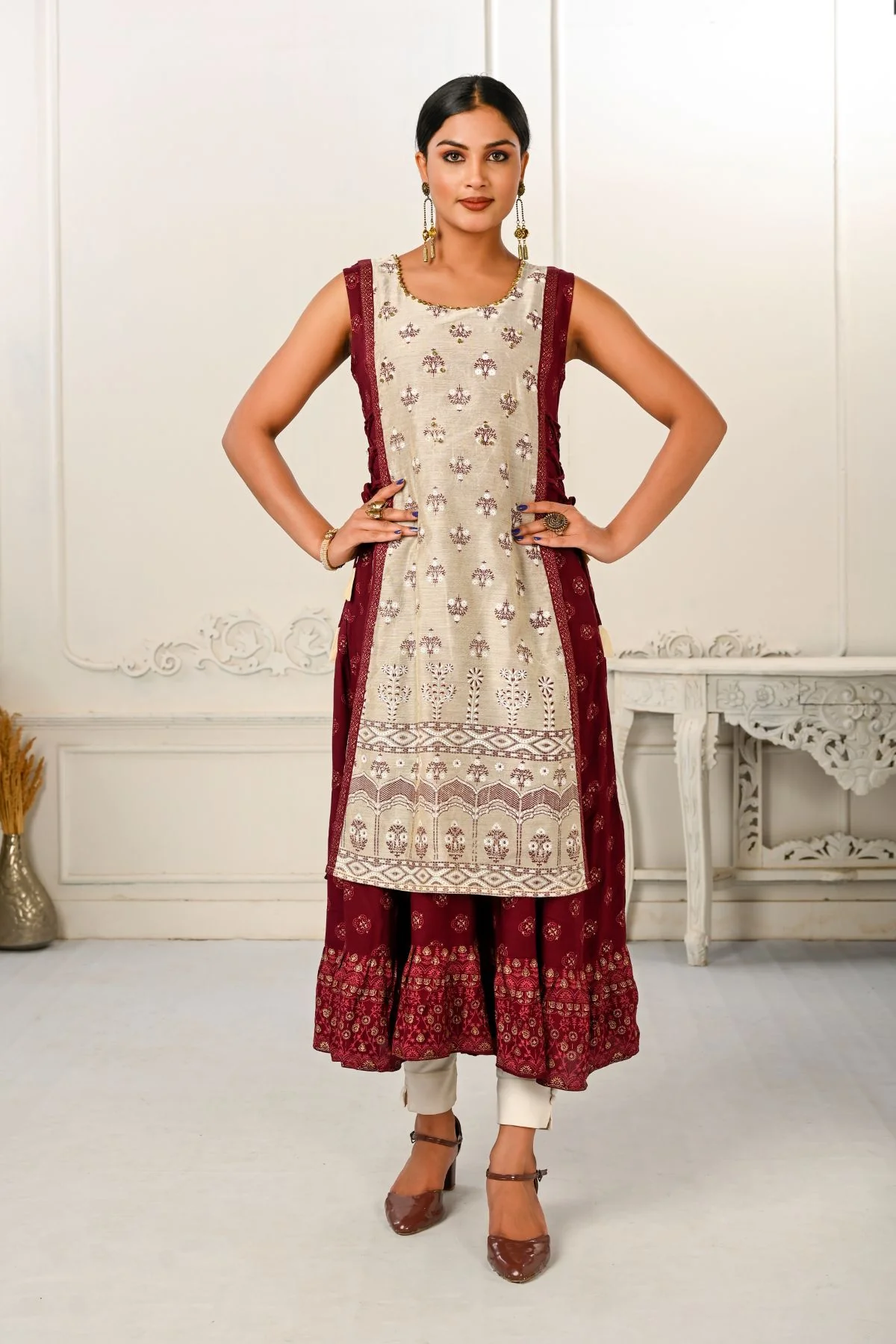 2 Layered Inner Cotton And Outward Jacket Chanderi Kurti For Women