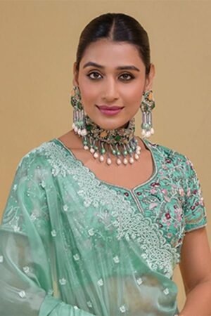Light Green Shimmer Georgettes With Delicate Embroidery Saree