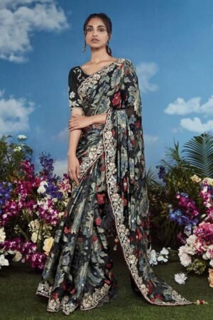 Beautiful Black Designer Indo-Western Saree for Party and Reception
