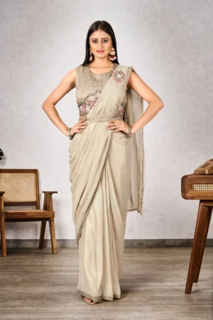 Premium Satin Silk & Fancy Fabric Embroidery & Hand Work Fancy Drape Saree & Choli