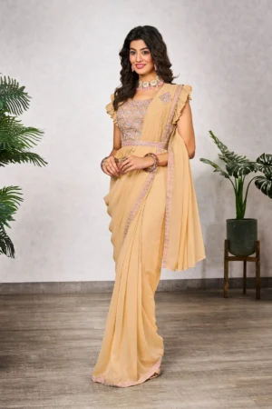 Breathtaking Georgette Designer Saree with Belt for Wedding and Reception