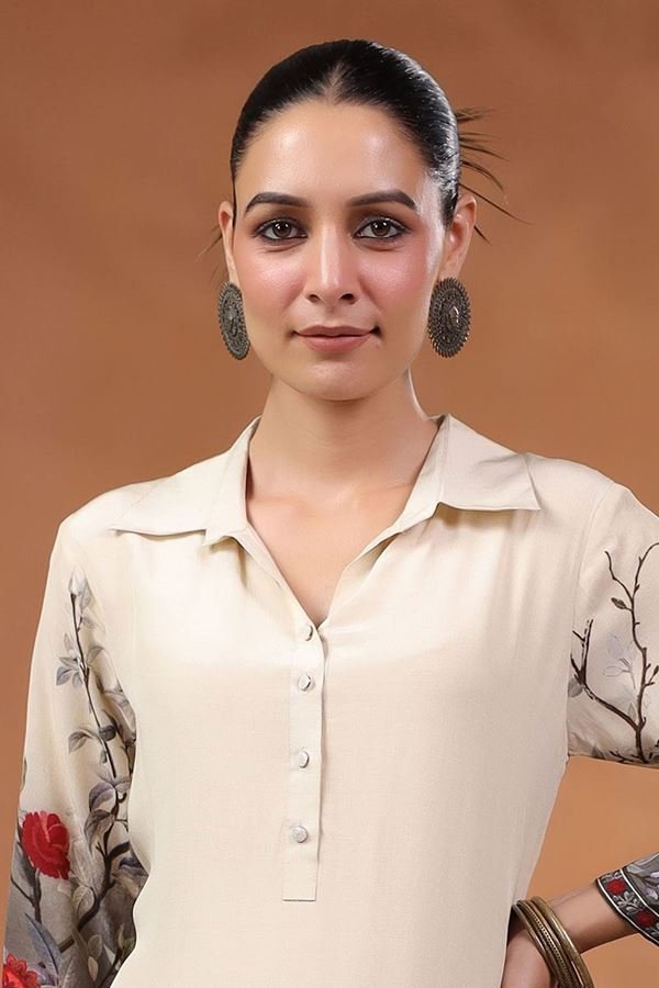 Get praised for your beauty and charm with this heavenly Cream and Grey colored designer Straight Cut style kurti. Shop online for this kurti which is made of Semi Crepe Twill fabric and is beautifully crafted with Floral Printed Work. Pair this kurti with ethnic jewellery and a pair of heels to elevate your style.