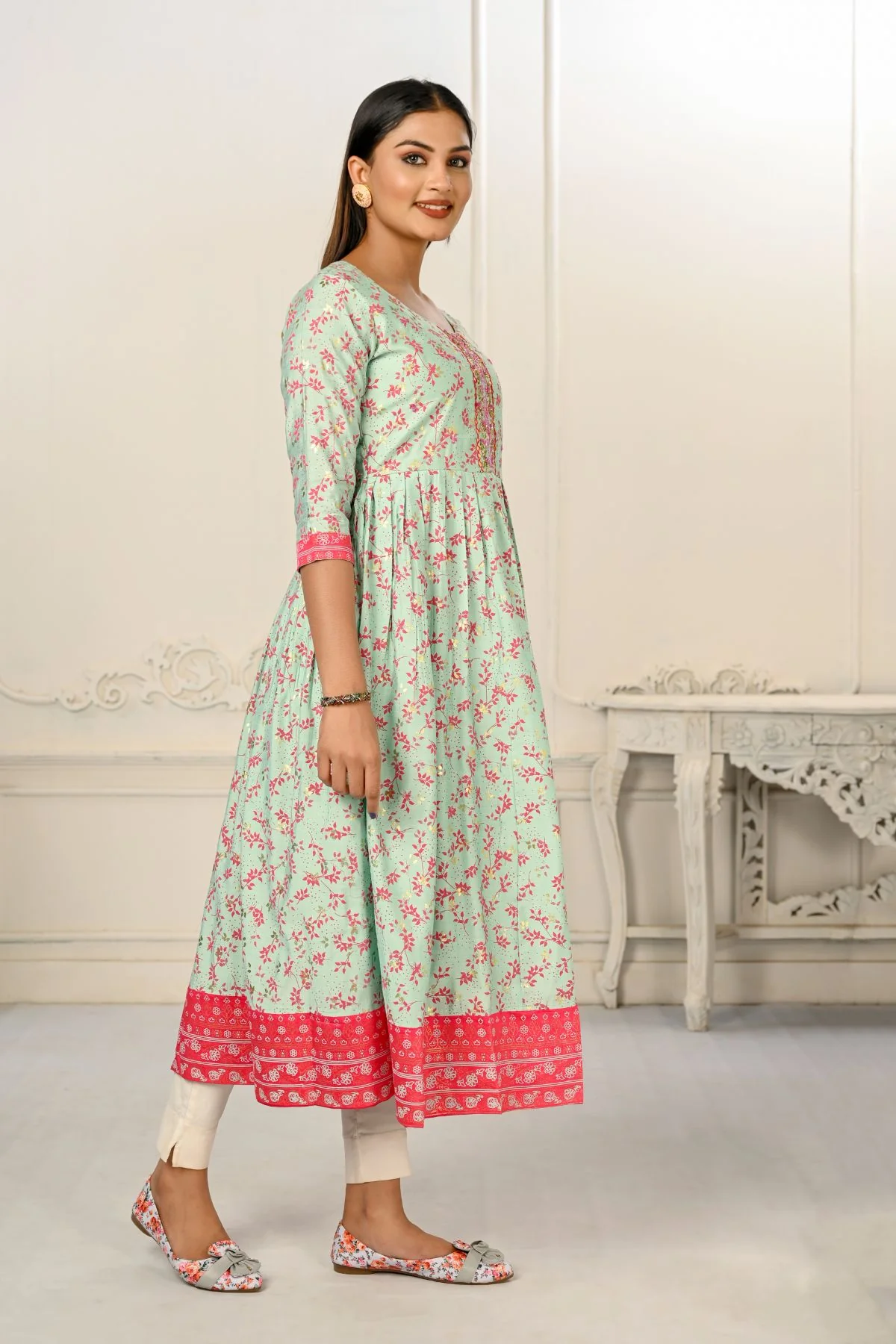 Be the first to review “Light Green Cotton Handprint Embroidered Kurtis” Cancel reply