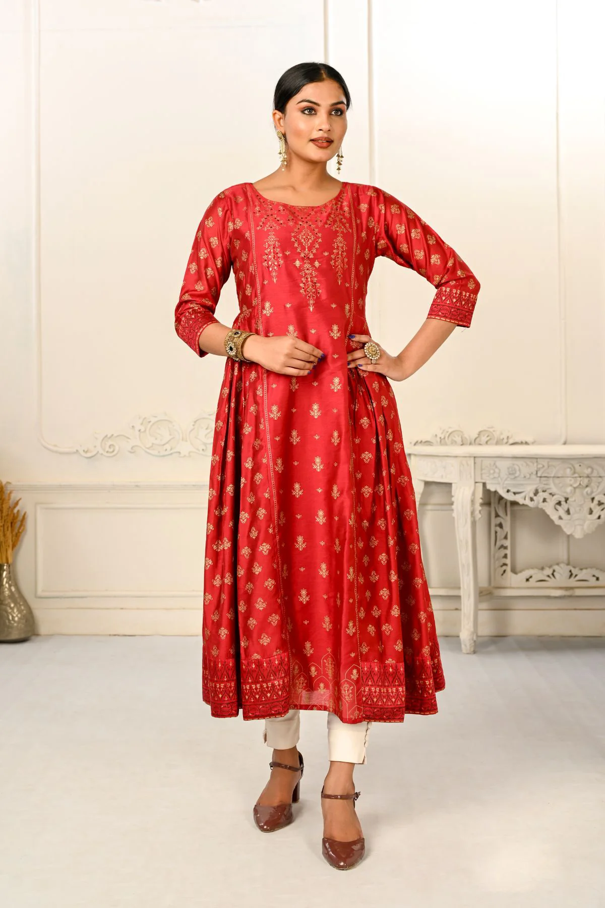 RED MAROON VOLUMINOUS ANARKALI SUIT SET