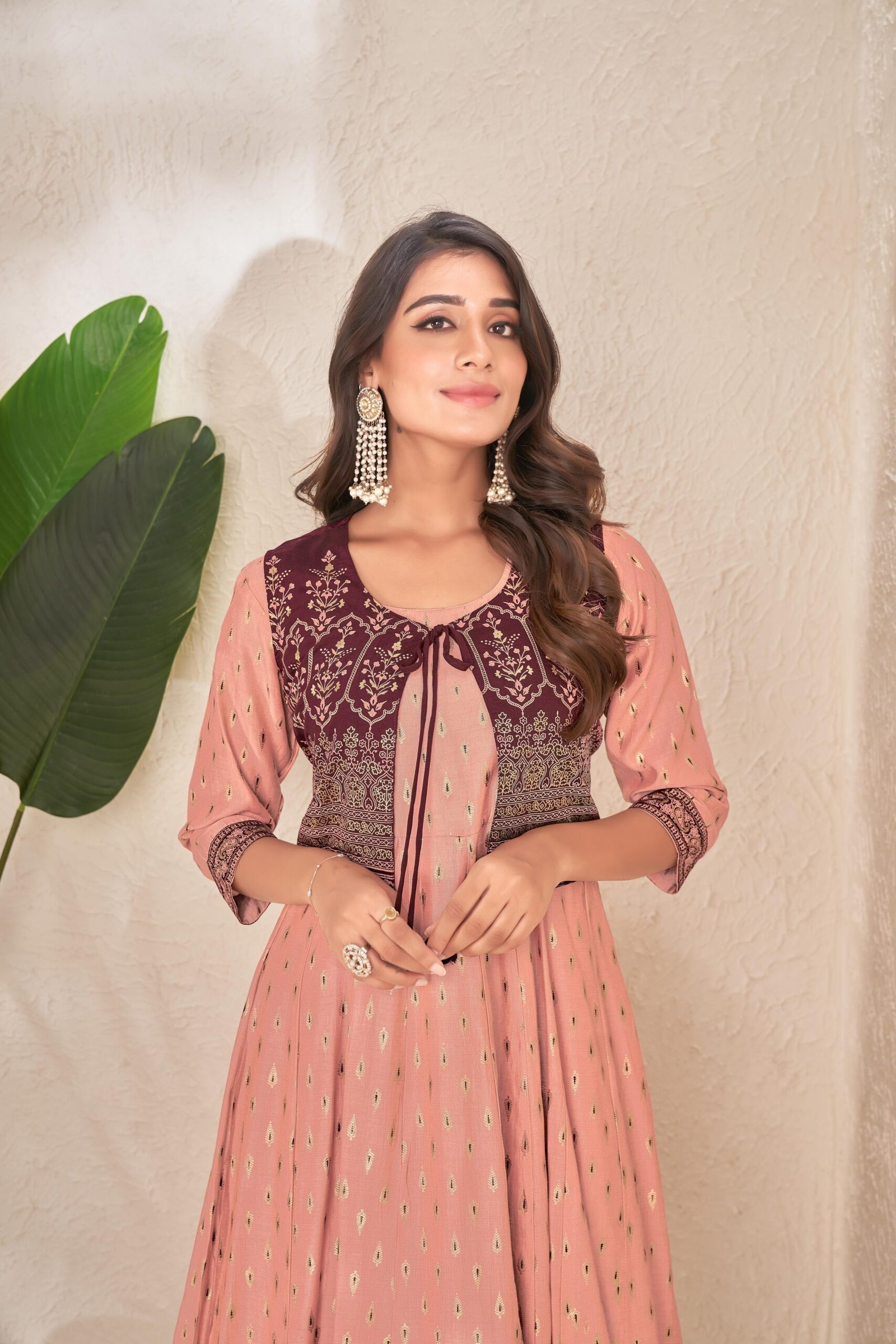 2 Layered Inner Cotton And Outward Jacket Chanderi Kurti For Women