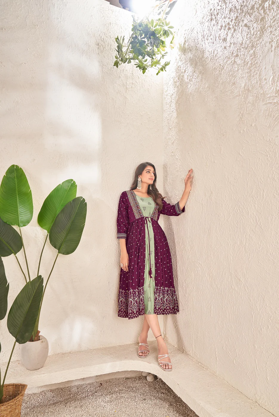 2 Layered Inner Cotton And Outward Jacket Chanderi Kurti For Women