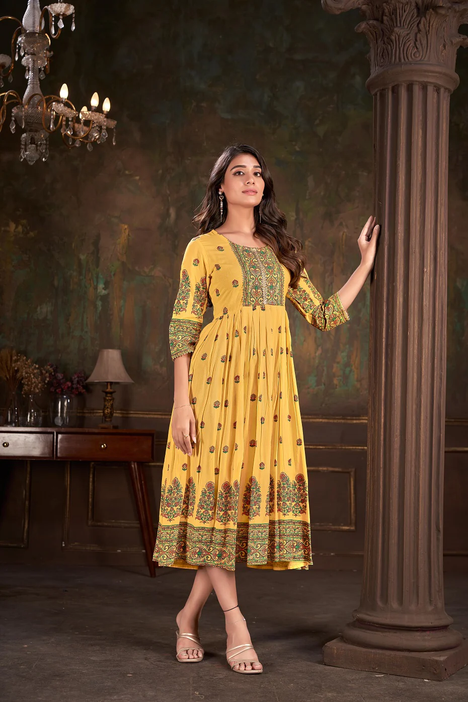 Enticing Mustard Muslin Designer Kurti for Party and Haldi