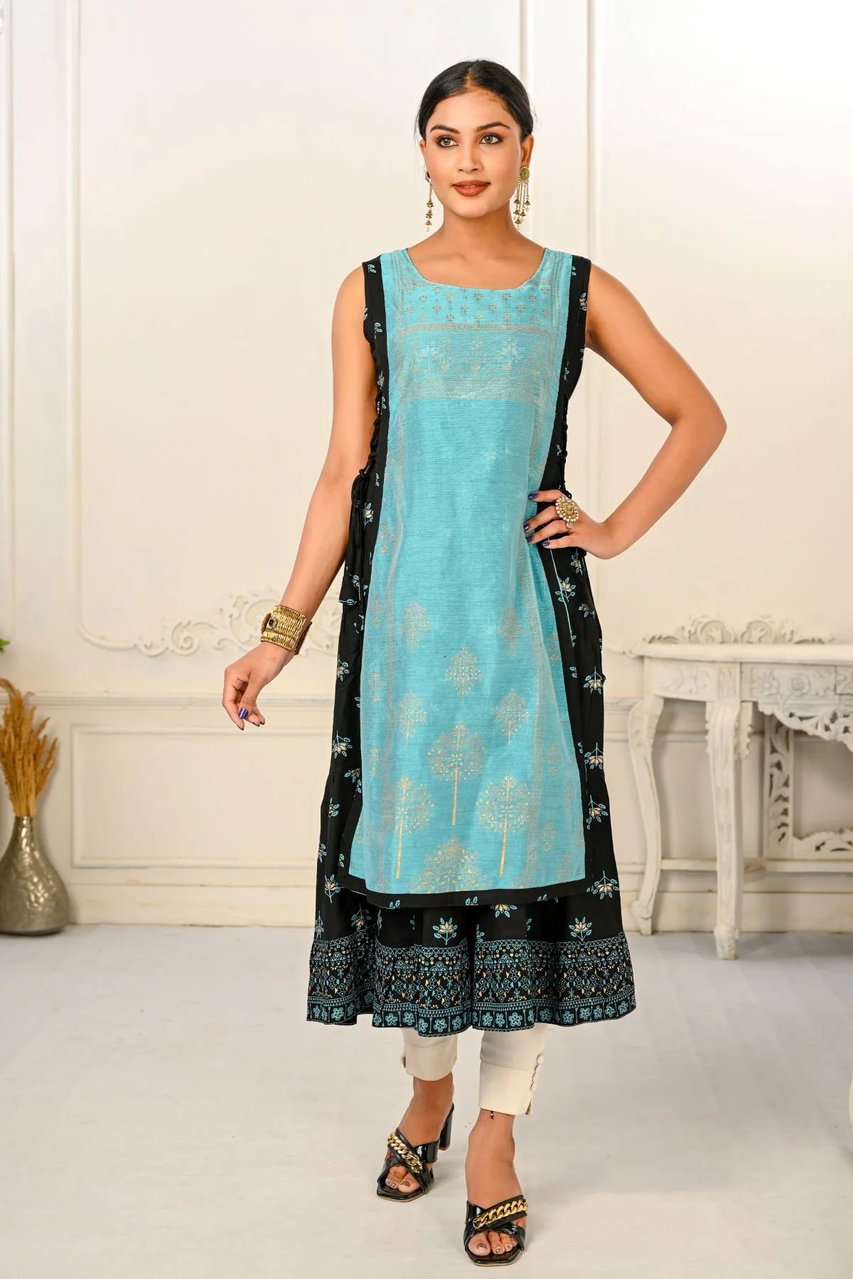 2 Layered Inner Cotton And Outward Jacket Chanderi Kurti For Women